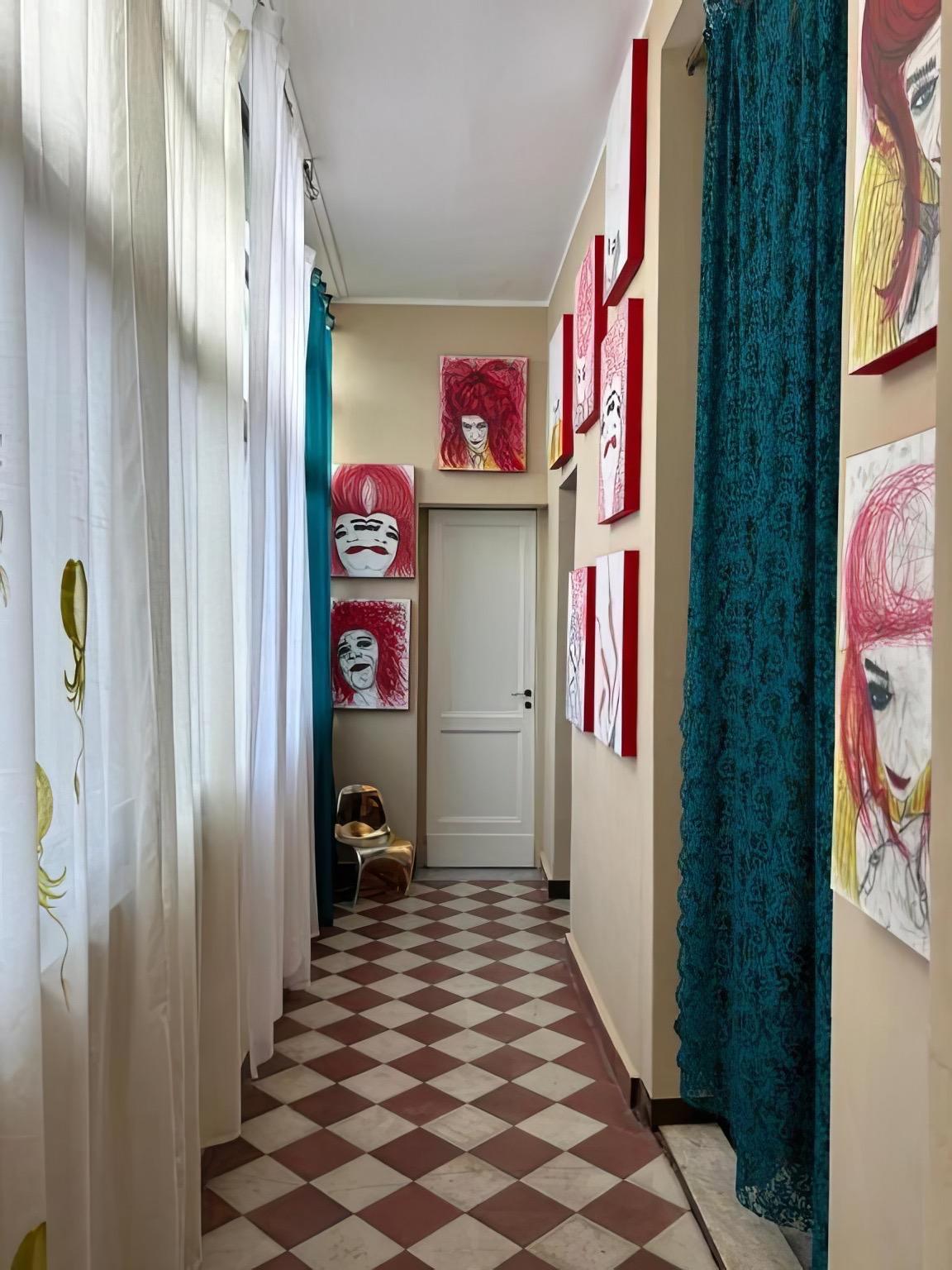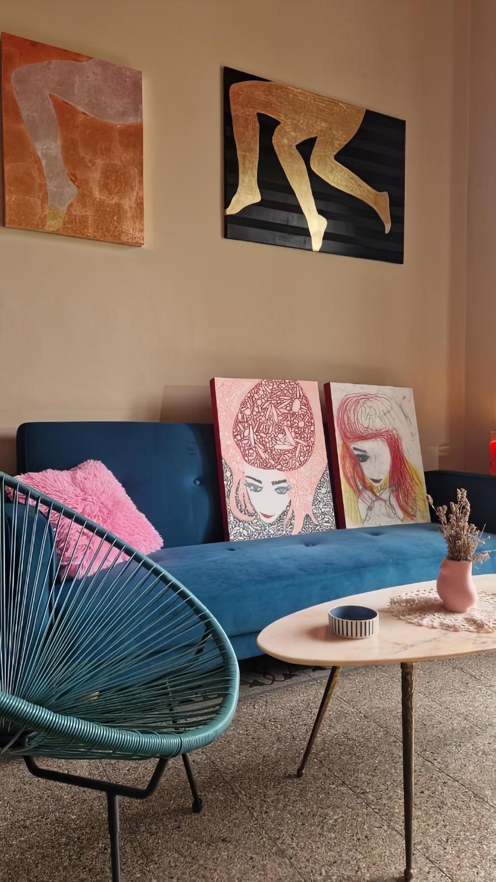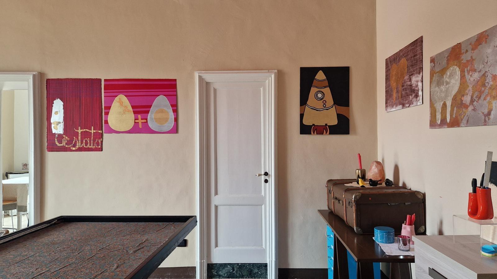 All’interno dell’appartamento è presente anche una stanza-laboratorio, visitabile su richiesta, dove Giulia espone e vende le sue creazioni artigianali in pelle. Le pareti della casa sono arricchite da opere d’arte originali, quadri e disegni firmati “Zula”, disponibili per l’acquisto.