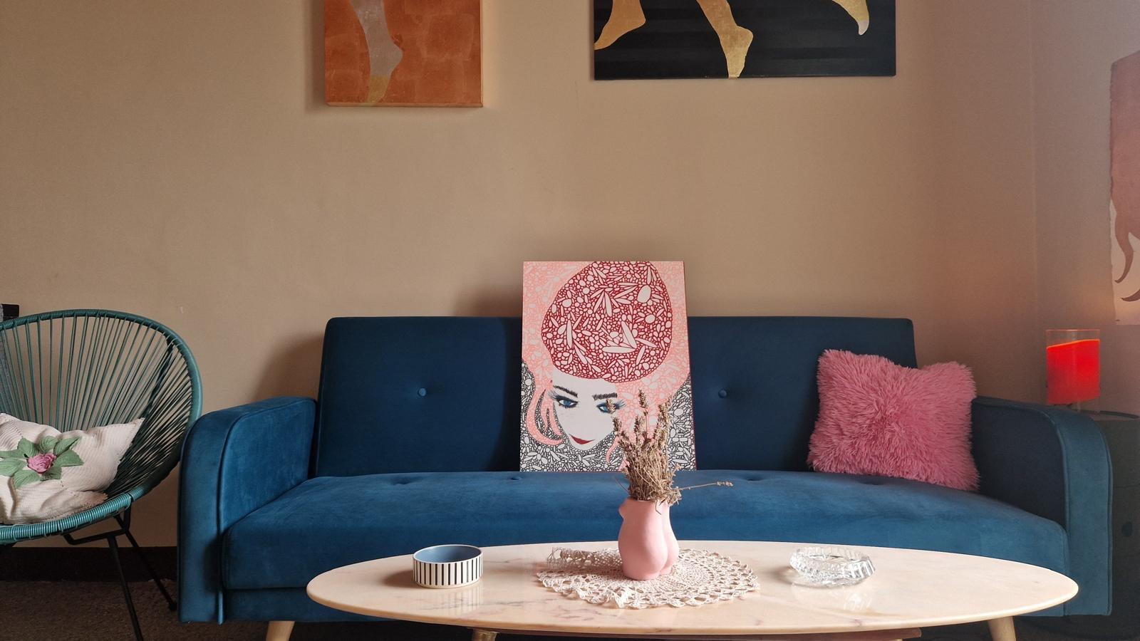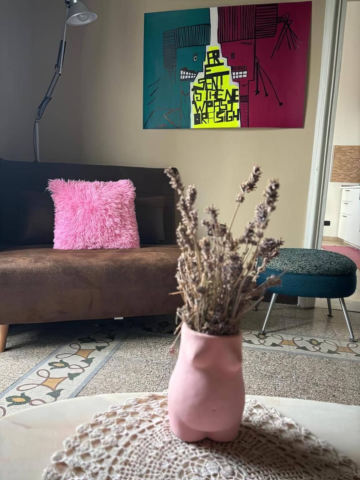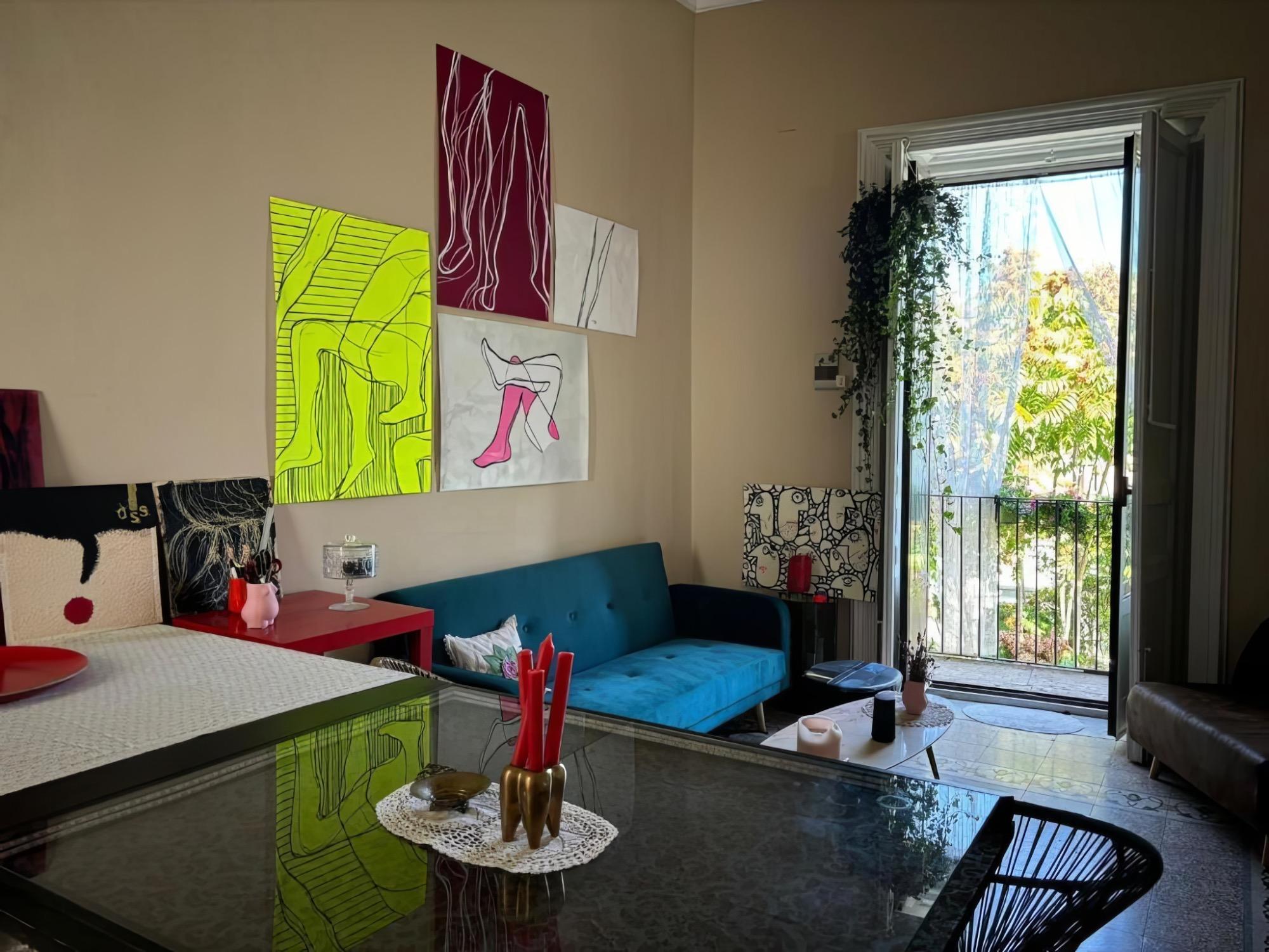 All’interno dell’appartamento è presente anche una stanza-laboratorio, visitabile su richiesta, dove Giulia espone e vende le sue creazioni artigianali in pelle. Le pareti della casa sono arricchite da opere d’arte originali, quadri e disegni firmati “Zula”, disponibili per l’acquisto.