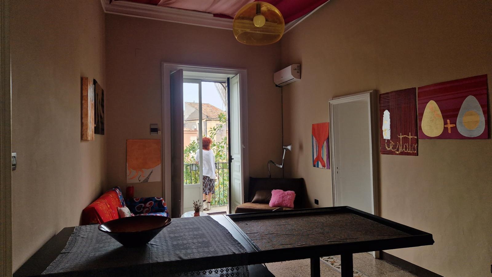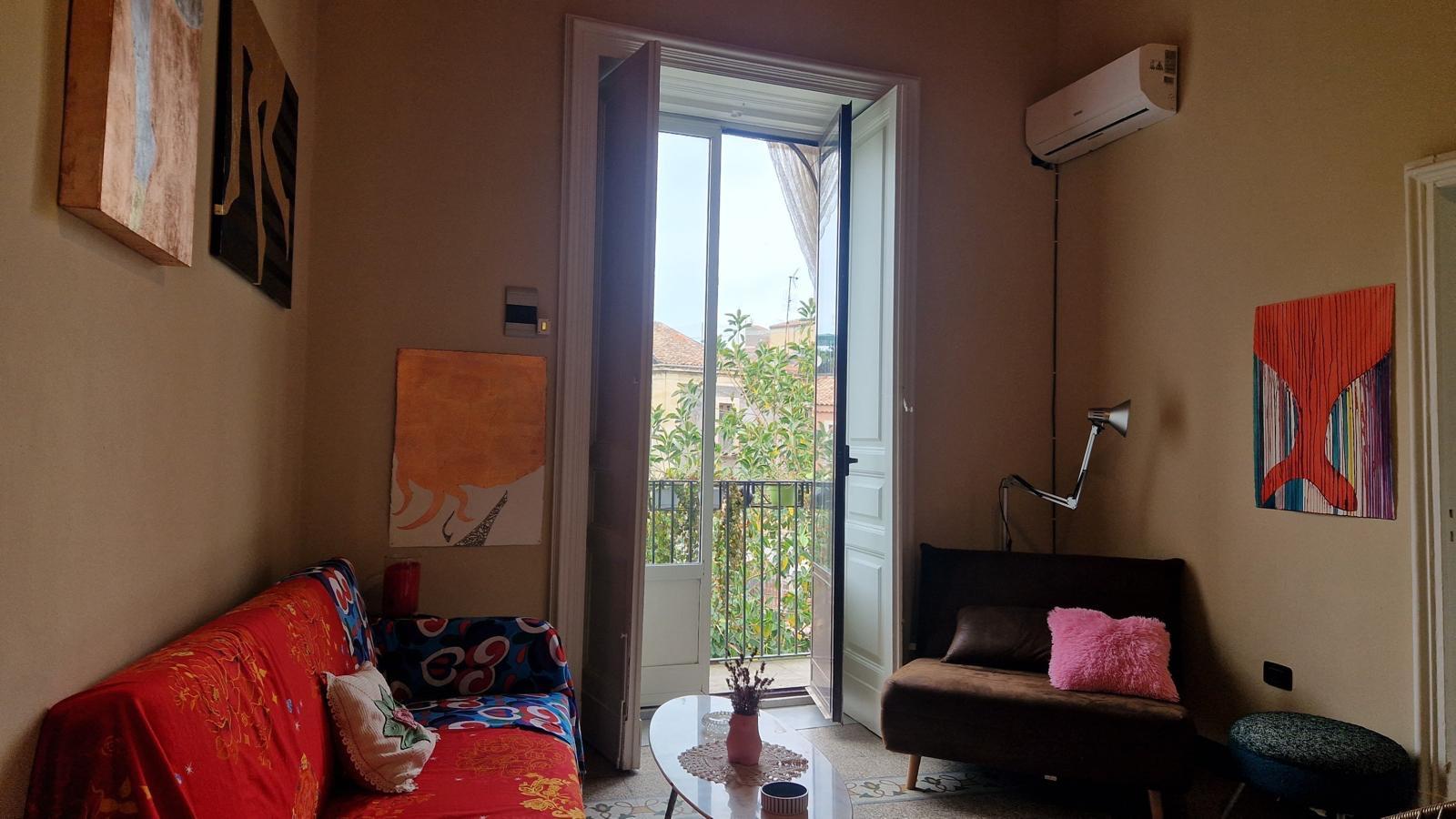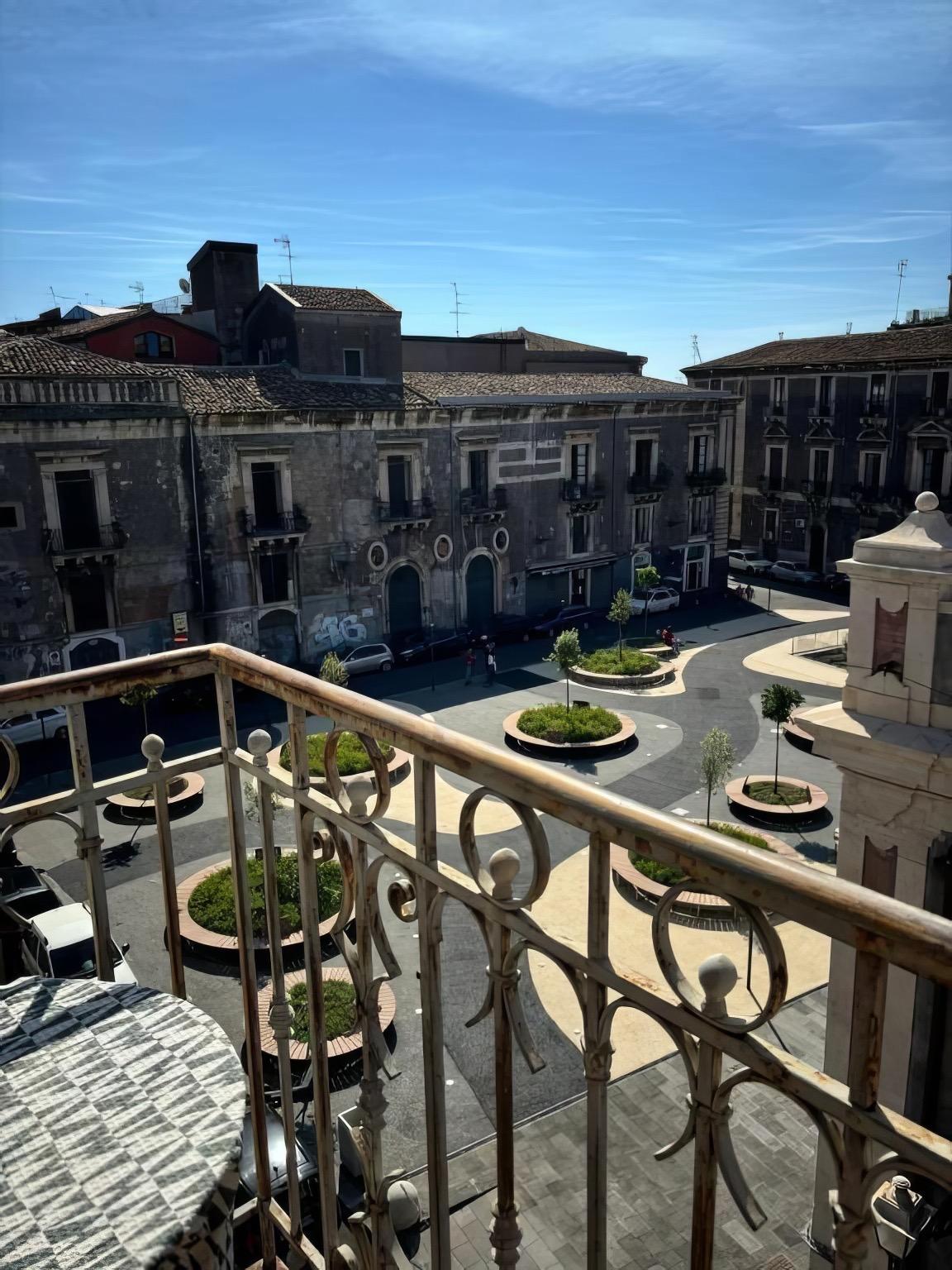 Affacciata sulla suggestiva Piazza Cardinale Pappalardo, recentemente ristrutturata e ora completamente pedonale, la casa gode di una posizione privilegiata di fronte al Palazzo Biscari, uno dei capolavori del barocco catanese. Il balcone interno regala invece uno scorcio tranquillo sul cortile condominiale, ombreggiato da grandi alberi.